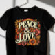 Hier ist ein weiteres 70er-inspiriert T - Shirt-Design mit kühnen, fantasievollen Typografien, die "Peace & Liebe" mit lebendigen, Retro-Blumenmustern lesen. 🌸 ✨ 🌼