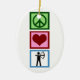 Ein Friedenszeichen, ein Herz und ein Bogenschütze mit Bogen und Pfeil.