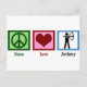 Niedliche Bogenpostkarten für einen Toxiopholiten oder Bowman in einem Bogenschiesszentrum. Peace Liebe Archery Gesichtsmaske für einen erfahrenen Bogenschützen. Ein Lehrer kann diese ausschicken, um den Bogenunterricht zu bewerben.