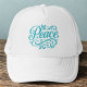 Dieser Friedens-Advocacy-Trucker, der das Wort "Friede" in einem anmutigen Drehbuch mit floralen Akzenten umgibt, die Ruhe, Hoffnung und ruhige Kraft ausstrahlen.