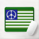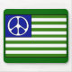 Blaue, weiße und grüne Flagge mit einem Friedenssymbol anstelle der Sterne erhält das Wort heraus, dass Frieden ein Teil des Rettens des Planeten sein muss, weil Krieg eine destruktive Kraft, die uns beeinflußt und der Planet ist. Verbreiten Sie die Mitteilung, dass, Krieg beendend, die Erde rettet.