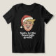 Dieses lustige Weihnachtsdesign zeigt eine fröhliche Santa-ähnliche Cartoon-Figur, die einen spielerischen Aufruf zum Friedensfest verbreitet.