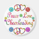 Ein jubelnder Liebhaber kann ihre Liebe mit diesen lustigen Blume, ein Friedenszeichen und ein Herz zeigen, und die Worte - Peace Liebe Cheerleading. Ein tolles Geschenk für einen Cheerleader.