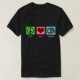 Friedenszeichen, Herz und ein Campingszelt auf einem schwarzen Shirt.