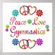 Ein Gymnastikliebhaber kann seine Liebe mit diesen lustigen Blume, ein Friedenszeichen und ein Herz zeigen, und die Worte - Peace Liebe Gymnastik. Ein tolles Geschenk für einen Gymnast.