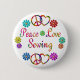Ein nähender Liebhaber kann ihre Liebe mit diesen Spaß-Blumen zeigen, ein Friedenszeichen und ein Herz und die Wörter - FriedensLiebe-Nähen. Ein großes Geschenk für eine Näherin.