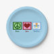 Ein Friedenszeichen, Herz und ein niedliches binky auf Babyblau.