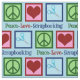 FriedensLiebe Scrapbooking. Ein schönes scrapbooker Geschenk mit einem hübschen Friedenszeichen, einem Herzen und einem niedlichen Paar Scheren perfekt für das Entwerfen und das In Handarbeit machen eines Einklebebuchs der Fotos und der Erinnerungen.
