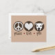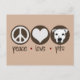 Benutzerdefinierte Postkarte "Frieden, Liebe, Gruben" mit einem Friedenszeichen, einem Herzstück und einem Bild meines amerikanischen Grubenbruchs Terrier in fett runden Ikonen. Vergewissern Sie sich, dass jeder weiß, wie Sie sich über diese liebenswerte, missverstandene Hunderasse mit dieser modernen Postkarte fühlen. Sie können die Hintergrundfarbe anpassen oder ändern.