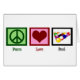 Peace Liebe Poolkarten für einen Billardhaie oder Hobbyspieler, der Bar wie Billard spielen Lieben. Ein Friedensschild, ein Herz und eine Kugel.