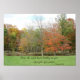 Bild von Wäldern im Herbst mit einem biblischen Zitat über Frieden.