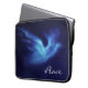 Ein friedliches Bild einer abstrakten Taube, um Ihren Laptop zu bedecken und zu schützen. Der Hintergrund ist in Blau gehalten, die Taube ist in helleren Blau- und Weißtönen gestrichen. Dies ist ein digitales Bild aus einem Foto einer natürlichen Wolkenbildung.