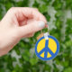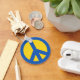 Peace Ukraine zeigt das international anerkannte Friedenssymbol in den Farben der ukranischen Fahne.