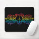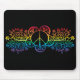 Regenbogen färbte blumiges Friedenszeichen auf einer schwarzen Hintergrund Mausunterlage.