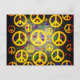 Gelbe, goldene und rot getönte Friedenszeichen mit vielen bunten Regenbogenherzen verbreiten die Anti-Kriegsbotschaft kunstvoll und deutlich.