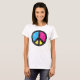 Groovy Friedenszeichen-T - Shirt. Das Friedenszeichen wird mit den blauen, roten und gelben Segmenten gefüllt. Entwurf wird für einen groovy, Vintagen Blick verkratzt. Ein cooler FriedensT - Shirt!
