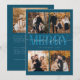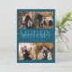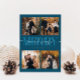 Elegante und moderne Urlaubskarte mit Typografie, die "friedlich, spielerisch, fröhlich" mit 4 quadratischen Bildern sagt. Fügen Sie der Nachricht ein weiteres Foto auf der Rückseite hinzu. Der Hintergrund ist aquamarin.