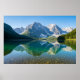 Erfassen Sie die Ruhe der Natur mit diesem atemberaubenden Bild von Bergen, die sich in einem kristallklaren See spiegeln. Das grüne und blaue Wasser offenbart Steine auf dem Grund, während felsige Gipfel und dichte Wälder die Szene umgeben. Intensives Sonnenlicht erzeugt einen lebendigen Kontrast zwischen Himmel und Erde. Ideal für Raumdekoration, Kalender und Produkte, die die Natur feiern. Ein Werk, das Frieden, Größe und die unberührte Schönheit der Naturlandschaft vermittelt, perfekt für Reisebegeisterte.