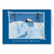 Was könnte friedlicher sein als weicher Schnee, der auf dem Land fällt. Folgen Sie dem Weg in die Hütte für ein paar Feiertagsjubeln. Erstellt im einfachen, sauberen Stil der Karten der Mitte des Jahrhunderts.