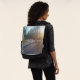 Dieser kühne, erwachsene Rucksack mit einer austauschbaren Vorderseite hat mein Originalfoto von einem friedlichen gewundenen Weg durch den Wald mit grünen Bäumen und Sonnenstrahlen, die auf dem Weg scheinen. Passen Sie den Text "Verfolgen Sie Ihre Träume" mit der Vorlage an.