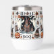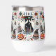 Lassen Sie sich in diesem freundlichen Geist Halloween Weinglas/ Schuster verwöhnen. Das Design ist mit weißen Halloween-Gespenstern, Kürbislaternen und Ghouls gestaltet. Der Text kann leicht mit der modernen Typografie aus dem Zazzle-Werkzeug und den verfügbaren Skripten angepasst werden.