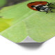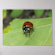 Ein freundlicher 7 gepunkteter Ladybug, der auf einem grünen Blatt posiert.