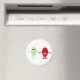 Ein Magnet mit einem Cartoon einer lächelnden roten Traube mit Händen mit einem lächelnden grünen Traube, beide Trauben haben glänzende schwarze Augen und rosa Mund.