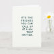 This friendship card keeps things simple with a white background and a strong friendship message at the center. The main text reads, “IT’S THE FRIENDS YOU CAN CALL UP AT 4 A.M. THAT MATTER.” It’s printed in all-caps block letters in a dark teal or deep green color, making it easy to read. The quote sits right in the middle, with lots of open space around it so the words feel like the focus. There aren’t any characters or objects, just the message, which makes it feel honest and direct—perfect for a friend you truly care about. The overall look is calm and thoughtful, like a quiet reminder of who shows up for you when it counts. Add a sweet note inside and pair it with a little treat ❤️💌🍫.