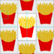 Das von der Firma Enchantfancy Design entworfene französische Fries Pattern Fabric zeichnet sich durch ein Muster aus roten Fastfood-Frittecontainern mit gelben Pommes frites aus.