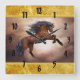 Friesian brown horse rearing up with misty clouds quadratische wanduhr