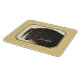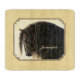 Schwarzes Friesisches Pferd mit einer langen, gewölbten Mähne mit warmen gelben Highlights aus dem späten Nachmittagssonnenlicht. Alles auf einem goldgelben gemusterten Hintergrund.