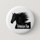 Porträt eines schönen schwarzen friesischen Stallion mit der langen flüssigen Mähne, fotografiert und von Magdalena Strakova entworfen. Aufschrift: Friesischer Fan. Einzigartiges und ursprüngliches Geschenk für jeden friesischen Pferdeliebhaber!