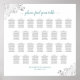 Diese schöne Hochzeitskarte zeigt dunkelgrauen und aquamarinen oder türkisfarbenen Text auf weißem Hintergrund mit Sitzplätzen für 260 Gäste - 26 Tische mit 10 Sitzplätzen pro Tisch. Es zeichnet sich durch ein schlichtes, aber stilvolles und elegantes Design mit verzierten dekorativen Imitaten Folie silberne Filigree in den Ecken aus. Der Titel ist in extravaganter Skriptkalligrafie geschrieben und lautet: Bitte finden Sie Ihre Tabelle.
