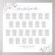 Diese schöne Hochzeitskarte zeigt dunkelgrauen und hellblauen Text auf weißem Hintergrund mit Sitzplätzen für 260 Gäste - 26 Tische mit 10 Sitzplätzen pro Tisch. Es zeichnet sich durch ein schlichtes, aber stilvolles und elegantes Design mit verzierten dekorativen Imitaten Folie silberne Filigree in den Ecken aus. Der Titel ist in extravaganter Skriptkalligrafie geschrieben und lautet: Bitte finden Sie Ihre Tabelle.