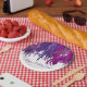 Wirbel in Rosa- und Purplesatönen verleihen diesem Design einen Sinn für Bewegung und Spontaneität. Fringe, elegant und elegant vor weißem Hintergrund, verblasst Fringe! mit feminininer Eleganz. Fügen Sie Ihre eigenen Grüße zu diesem auffälligen neuen Design.