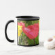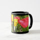 Diese hübsche Blumenkaffeemaschine-Tasse zeigt ein Foto von rot-gelb gefangenen Tulpen. Das Foto wurde mit Makrofotografie gemacht, was zu so brillanten Details führte, dass man die kleinen Ränder und subtilen Veränderungen im Schauspiel auf der mittleren Tulpe sehen kann. Das Foto liegt auf beiden Seiten der Tasse und ist von einem schwarzen Rand umgeben. Das Design wird hier auf einer Schwarz-Weiß-Ringer-Tasse gezeigt, ist aber auch auf anderen Tasse erhältlich, darunter Reisebügel und wunderschöne mattierte Tasse aus Glas.