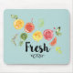 Ein Mauskissen mit niedlichem Design mit Zitrusfrüchten - Zitronen, Limetten und Grapefruits. Trendy Typografie sagt "Fresh" mit einer niedlichen scharfen Betonung.