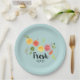 Papiere Teller mit niedlichem Design mit Zitrusfrüchten - Zitronen, Limetten und Grapefruits. Trendy Typografie sagt "Fresh" mit einer niedlichen scharfen Betonung.