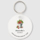 Ein Schlüsselanhänger mit einer sommerlichen Grafik eines Haufen Erdbeeren, der in einem Eimer überfließt.