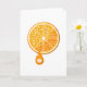Frisches Obst ist so schön und natürlich gesund. Das Design ist eine schöne, frische Orange, die mit einem Orangensaft aufgeschnitten wurde. Diese frische Orange sieht auf diesen Grußkarten großartig aus