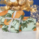 Der zitrusförmige Wrapper mit wunderschönen handbemalten Orangen und Grünpflanzen, die mit skurrilen Schriftzeichen geschmückt sind.