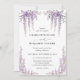 Die Watercolor Wisteria Floral Elegant Garden Wedding Invitation lädt Ihre Gäste ein. Dieses Design mit kaskadierenden lila Wisteria-Blume mit weichen Aquarelltönen eignet sich ideal für den Garten, im Freien und romantische Hochzeitsthemen. Die zarte Blumenstruktur kombiniert mit klassischer Typografie schafft eine zeitlose und raffinierte Ästhetik und ist somit die ideale Wahl für Hochzeiten im Frühjahr und im Sommer. Personalisieren Sie Ihre Namen, Ihre Hochzeitsdetails und Ihre Veranstaltungsinformationen für eine wunderbar angepasste Touch.