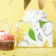 Zeitgenössischer Grafikstil und helle Akzente verleihen dem Muster eine fröhliche Stimmung.