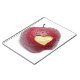 Frischer roter Apfel mit einem Herzen formte Notizblock