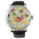 Uhr, Vintage Männeruhr mit schwarzem Lederarmband