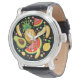 Uhr, Vintage Männeruhr mit schwarzem Lederarmband