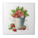 Keramik Kachel mit einer sommerlichen Grafik von einem Haufen Erdbeeren überfließt in einem Eimer.