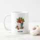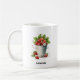 Eine Tasse mit einer sommerlichen Grafik eines Haufen Erdbeeren, die in einem Eimer überlaufen.