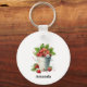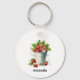 Ein Schlüsselanhänger mit einer sommerlichen Grafik eines Haufen Erdbeeren, der in einem Eimer überfließt.