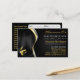 Passen Sie diese Visitenkarte an, die als Terminkarte dient. Zeigt das Bild von Haaren, Salonkamm, Salonschere (Schere) und Fön. Die Farben sind schwarz, weiß und goldfarben. Entwerfen Sie hier Ihre eigenen Karten.